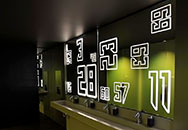 MULTIPLE PIECES OF DECORATIVE GLASS AND DRY ERASE MAGNETIC SURFACE PANELS :: UNIVERSITY OF OREGON, FOOTBALL OPERATIONS CENTER