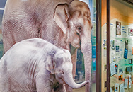 The new Portland Zoo Elephant Lands habitat opened to the public Tuesday, December 15, 2015. We are proud to be a contributor to the new project which quadrupled the size of the zoo's previous elephant habitat and added information displays. The feature of the information section is huge (elephants are big!) photo murals of the elephants created in full-color using Moonshadow photo-laminated glass. More information about "Elephants in Oregon" including a video can be found here